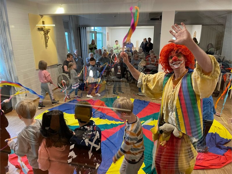Leuchtende Augen bei allen Beteiligten – der Mitmach-Zirkus von „Delectatio“ hat im Haus St. Anna -Halt- gemacht und uns alle in seinen Bann gezogen. Der Clown „Öern“ begrüßte morgens eine Gruppe aus der DRK-Kita „Dorfstraße“ und fing an, Kunststücke mit den Kindern einzustudieren.