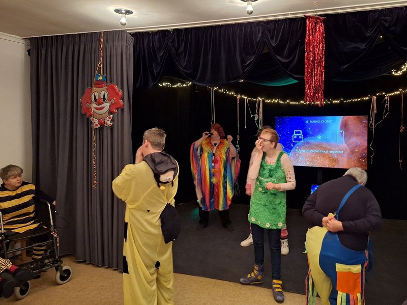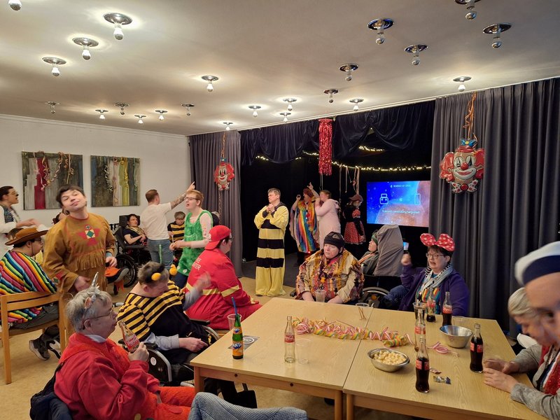 In der Karnevalszeit wurde es bei uns besonders bunt: Unser Saal war festlich dekoriert, 35 Bewohnerinnen und Bewohner erschienen in kreativen Kostümen und brachten ihre ganz persönliche Note mit. Jede und jeder hatte die Möglichkeit, sich einen Musikwunsch zu erfüllen und selbst zum Mikrofon zu greifen. Wir haben gemeinsam gesungen, getanzt und viel gelacht. Für eine besondere Überraschung sorgten das Kinderprinzenpaar und die Funkenmariechen, die mit ihrem Besuch die Karnevals-Stimmung im Haus noch verstärkten. Softdrinks, Snacks und Hot Dogs rundeten den Nachmittag ab und fanden großen Anklang.