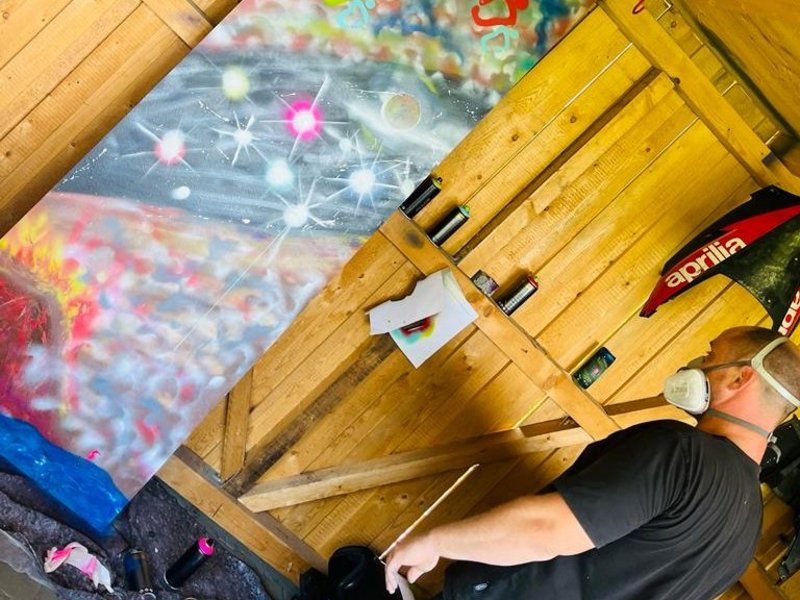 Unsere Bewohner/-innen haben sich großflächig kreativ ausgetobt, wir sind sehr stolz auf diese Arbeit, echt der Hammer.