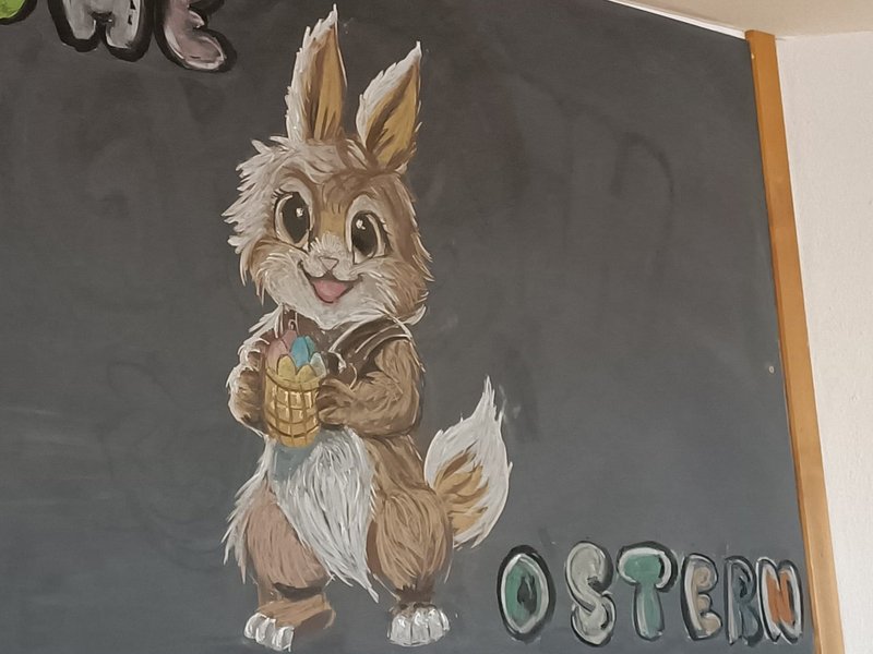 Einer unserer Bewohner hat der Kreidetafel im Speisesaal ein schönes neues Motiv verpasst: Passend zu Ostern begrüßt ein niedlicher Hase unsere Bewohnenden und Mitarbeitenden. Wir sind stolz, so einen begabten Künstler bei uns im Haus zu haben! Der Tochter einer Mitarbeiterin hat er, sehr zur Freude des Mädchens, ein selbst gemaltes Bild geschenkt: eine kleine Katze. Das sind wirklich besonders liebe Aufmerksamkeiten, die uns immer wieder daran erinnern, wie wertvoll der Austausch miteinander ist und was für einzigartige Talente in jedem von uns schlummern können. Umso mehr freuen wir uns, wenn eines dieser Talente zum Ausdruck kommt und uns allen den Alltag verschönert!