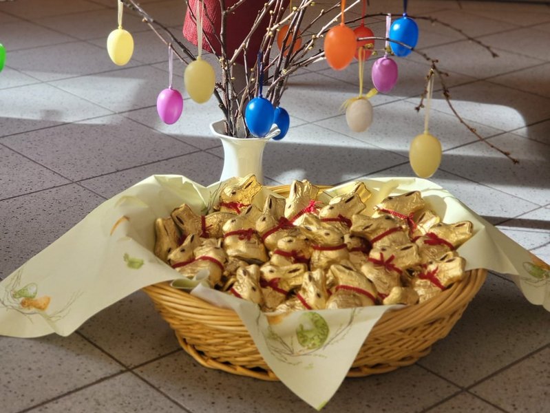 Osterhasen übergeben. Unsere Einrichtung hat 120 Hasen erhalten, die wir am Ostersonntag nach der Heiligen Messe an unsere Bewohnerinnen und Bewohner verteilt haben.