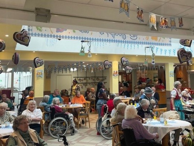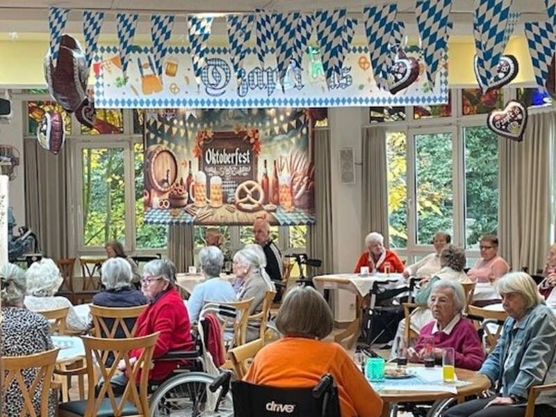 Für das leibliche Wohl war bestens gesorgt: frisch gezapftes Bier und Herzhaftes wie Laugenstangen, Brezn und Obatzda - die Küche des Hauses übertraf sich selbst und sorgte für zufriedene Gesichter und volle Bäuche. Bewohnende, Angehörige, Mitarbeitende und Gäste aus der Umgebung kamen zusammen, lachten, tauschten Geschichten aus und genossen die Gemeinschaft. Das Fest war ein voller Erfolg und zeigte einmal mehr, wie wichtig solche Veranstaltungen für das soziale Miteinander sind.
