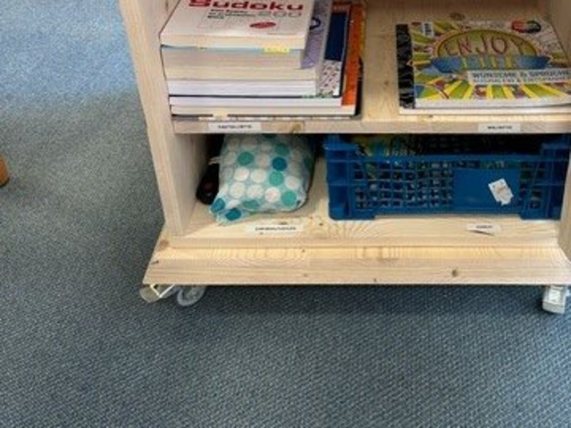 Danke an unseren Bewohner, Herrn A. und an unsere Schreinerin und Arbeitsanleiterin, Frau Gala Woytinnek, für das Bauen dieses tollen Skills-Koffers auf Rädern und danke an unsere Arbeitsanleiterin Frau Moni Gruber, dass eine Bewohnerin aus dem Bereich Garten und Tierpflege beim Sortieren und Beschriften helfen durfte und danke an alle Mitarbeitenden, die mit Gegenständen zum Bestücken beigetragen haben.