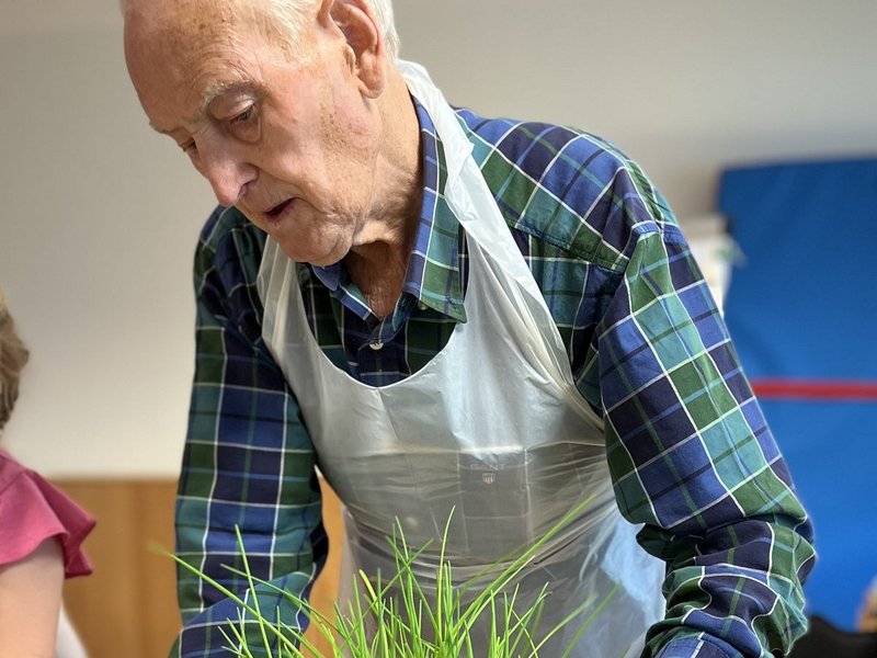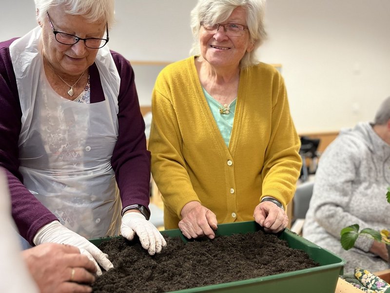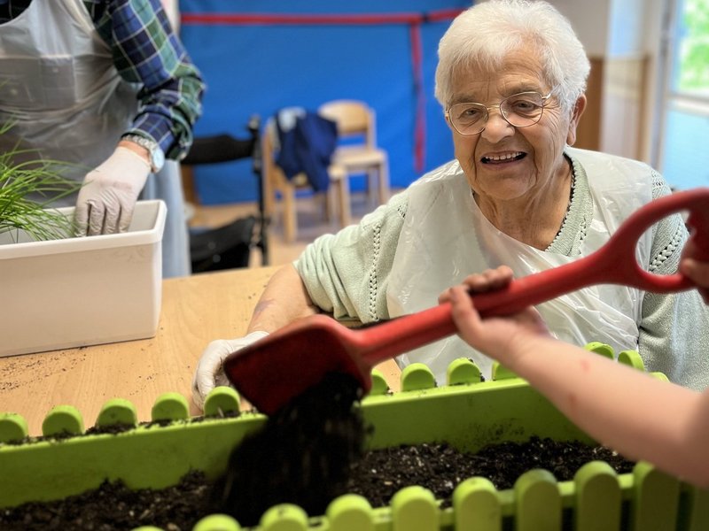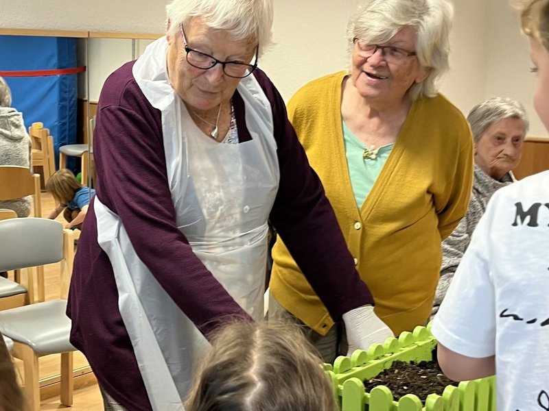 Das St. Josefshaus besuchte mit einigen Bewohnerinnen und Bewohnern den Kindergarten Kinderland. Gemeinsam mit den Kindern haben wir Gemüse und Kräuter eingepflanzt. Unsere Bewohnerinnen und Bewohner konnten ihr Wissen teilen und hilfreiche Tipps und Tricks weitergeben. Kopfsalat, Erdbeeren, Schnittlauch und Basilikum wurden voller Freude und Stolz in die vorbereiteten Beete gesetzt, gegossen und bestaunt. Alle hatten sehr viel Spaß und fanden den schönen Morgen sehr abwechslungsreich.
