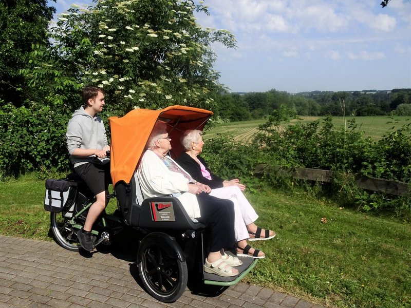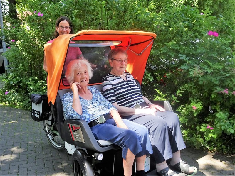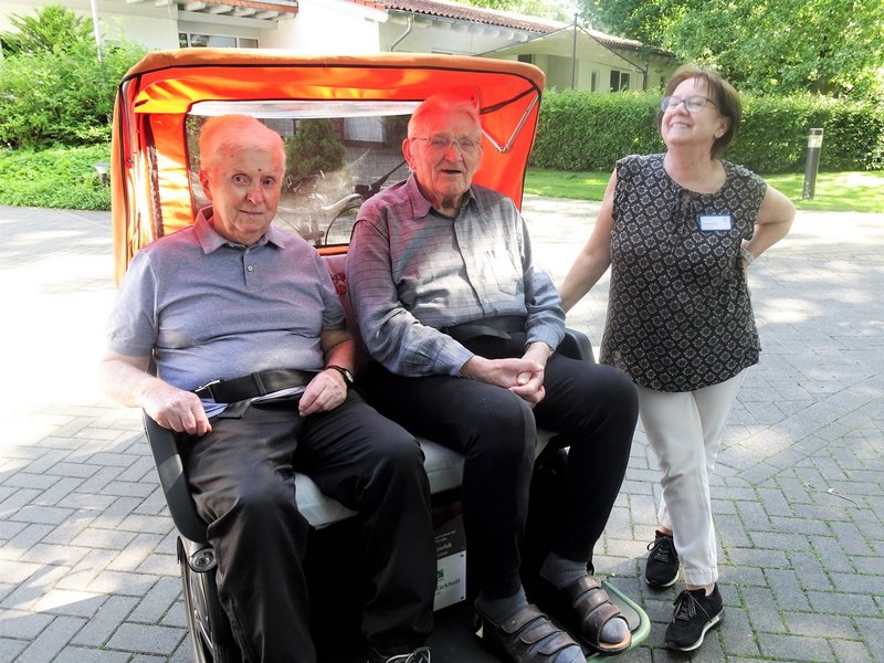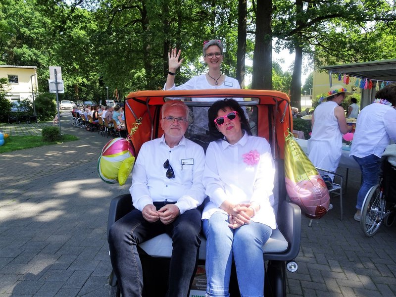Für eine Rundfahrt über das Gelände stand - beim sommerlichen Kaffee - eine Rikscha bereit.