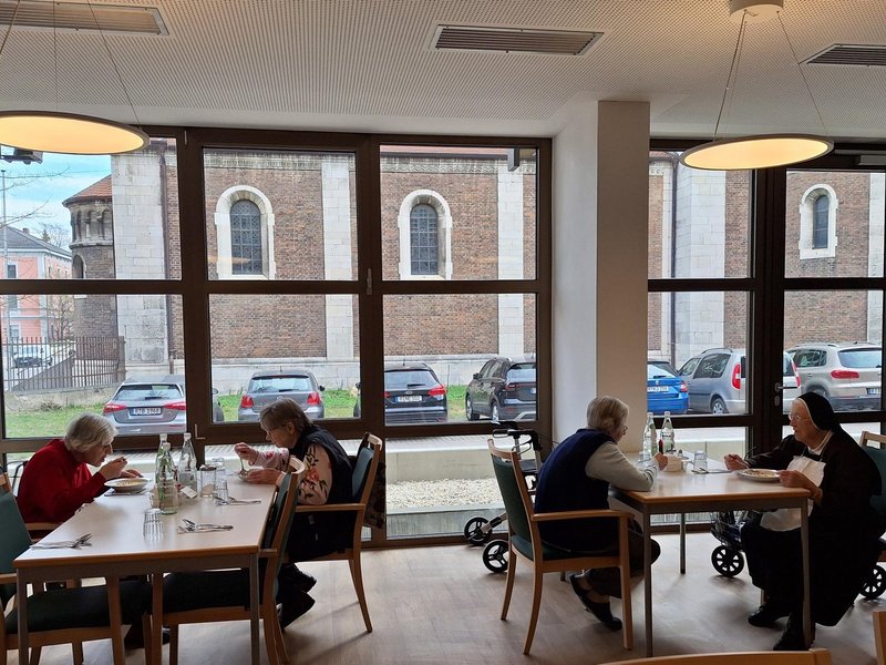 Der Festgottesdienst mit Pater Walter bildete den feierlichen Mittelpunkt des Vormittags. Die festliche Atmosphäre in der Kirche bot einen wunderbaren Raum für Besinnung und Dankbarkeit. Nach der Messe füllte sich der große Speisesaal schnell zur traditionellen Agape. Ein herzliches Dankeschön gilt unserem Küchenchef Raul Deschu, der uns heute mit einer meisterhaften Fastensuppe verwöhnt hat. Dass „Fastenspeise“ keineswegs Verzicht auf Genuss bedeutet, bewies Raul mit seiner Kreation, die bei allen Gästen für Begeisterung sorgte. Bei dampfenden Tellern und angeregten Gesprächen wurde gelacht, diskutiert und spürbar Gemeinschaft gelebt.