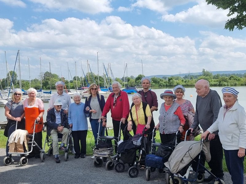 Mehrere Bewohnerinnen und Bewohner ließen sich die Chance eines Schiffsausflugs nicht entgehen. Mit ausgeliehenem Gemeindebus ging es zum ca. 40 km entfernten Stausee bei Gunzenhausen: dem seit 1985 existierenden Altmühlsee. So mancher Teilnehmende erinnert sich noch an die Wiesenlandschaft, die zuvor das Bild des fränkischen Altmühltals prägte. Mit der „MS Altmühlsee“ fuhren wir über das herrlich glitzernde Seewasser, welches urlaubsschön die Sonnenstrahlen reflektierte. Nach dem Dauerregen vergangener Tage war das schöne Wetter auf unserer Seite. Eine Bewohnerin sprach vom Handy euphorisch auf den Anrufbeantworter ihrer Tochter: „Du wirst nicht glauben, dass ich so eben mitten auf dem Altmühlsee Kaffee trinke“ und ein Bewohner, der früher oft seine Wanderrunden um das idyllische Gewässer drehte, schwärmte: „Das ist heute ein richtig schöner Tag, ja das gefällt mir sehr“. Dem wäre nichts mehr hinzuzufügen.