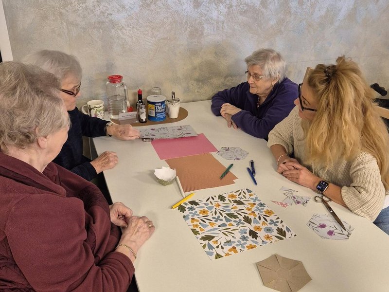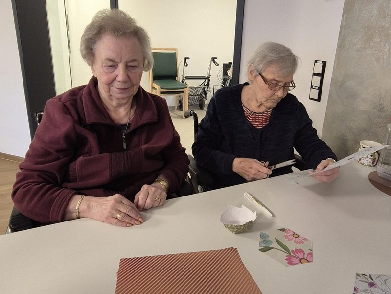 Der Tag begann mit einer besinnlichen, gemeinsamen Messe in der Hauskapelle. Im Mittelpunkt stand die Botschaft des Heiligen Martin, der mit seinem Mantel das Leben eines frierenden Bettlers rettete. Die Feier bot Raum für innere Einkehr und stärkte das Gefühl der Gemeinschaft. Anschließend versammelten sich die Teilnehmenden im Aufenthaltsraum: Fleißig wurden Sankt Martins Lichter gebastelt. Die Bewohnenden genossen es sichtlich, die bunten Lichter für den Abend vorzubereiten. Die liebevoll gestalteten Lichter schmückten später unsere Flure und sorgten für eine warme, festliche Atmosphäre.