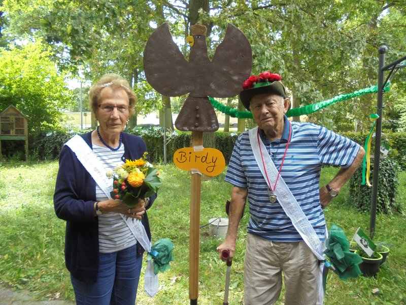 Zu Beginn wurde der Vogel auf den Namen „Birdy“ getauft und anschließend in einem spannenden Wettkampf abgeworfen. Bei Marschmusik und viel Applaus kürten die Mitarbeitenden die Königin mit Krone und Blumenstrauß und den König mit Schützenhut und Schärpe.