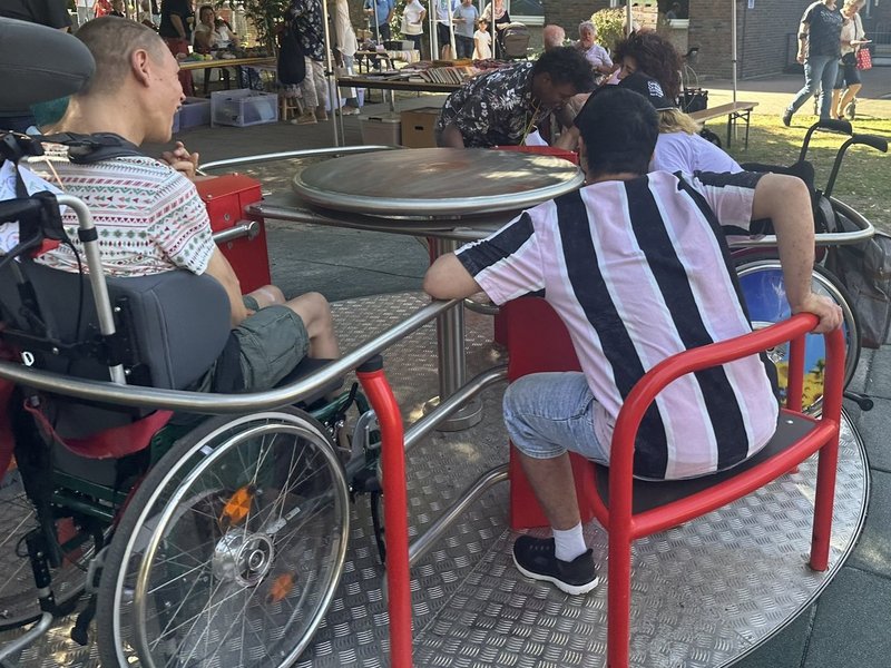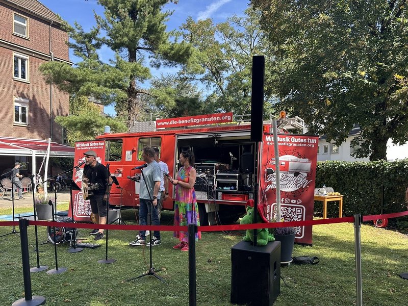Überall auf unserem Gelände gab es etwas zu entdecken: Aus der Chill-Ecke erklang fröhliches Lachen, an der Schmink-Station wurden stolz bunt bemalte Gesichter präsentiert und der galaktische Besuch der Helden aus dem Star-Wars-Universum begeisterte Gäste aller Altersklassen. Ein ganz besonderer Moment war die feierliche Einweihung unseres neuen Rollstuhlkarussells. Ein Augenblick der viele Herzen höherschlagen ließ und allen zeigte, wie wichtig gelebte Inklusion ist. Als Verein, der gemeinnützige Einrichtungen unterstützt, sorgte die Band Die Benefizgranaten mit ihren mitreißenden Rhythmen für Stimmung. Sie spielten nicht nur Musik, sondern vermittelten pure Lebensfreude – laut, fröhlich und einfach ansteckend!