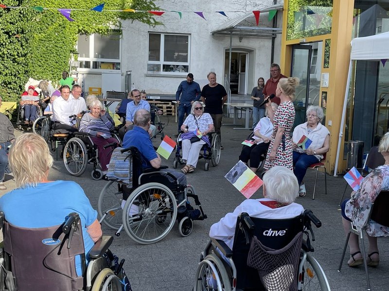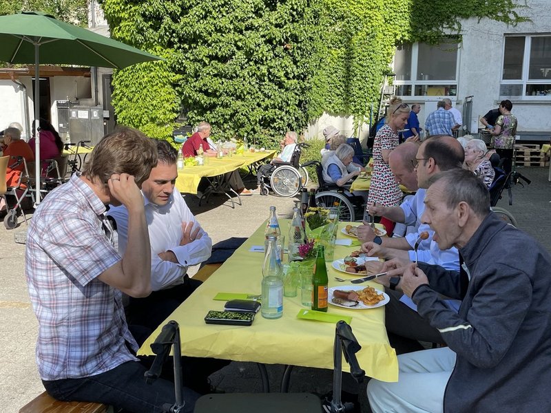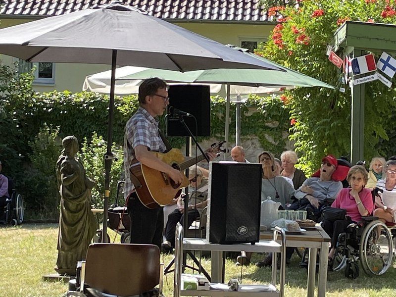 Bei sommerlichen Temperaturen und Sonnenschein haben sich zahlreiche Bewohnende im Garten eingefunden. Der Gottesdienst, den Andreas Frey von der Seelsorge des Deutschen Ordens sehr anschaulich gehalten hat, wurde begleitet von unserem Projektchor.