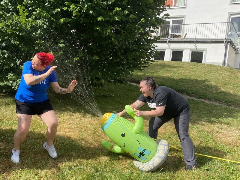 Zudem gab es - bei den sommerlichen Temperaturen - einen Wasser Kaktus Sprenger zur Abkühlung. Nachmittags wurde gemeinsam gegrillt.