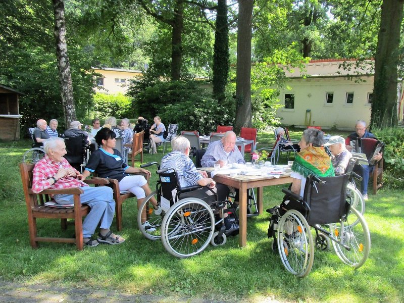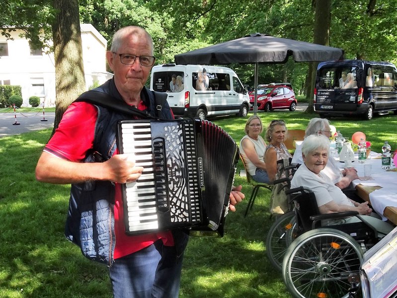 Für die musikalische Gestaltung des Nachmittags ging Herr Schmücker mit seinem Akkordeon durch die Reihen der Gäste, die mit Freude in seine Lieder einstimmten.