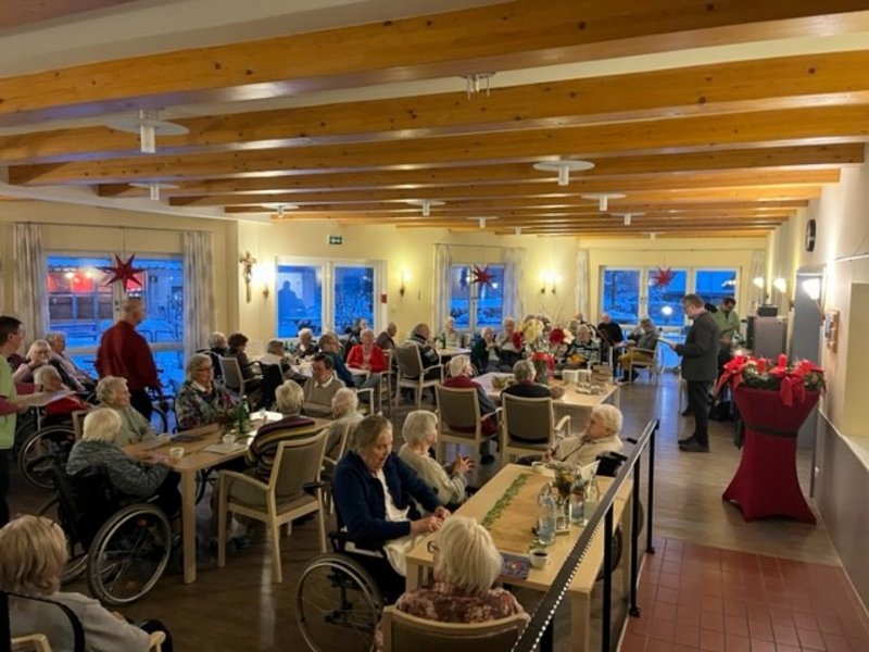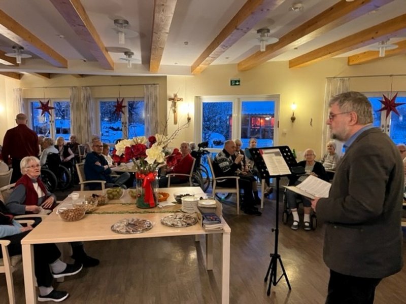 Pastor Winkelmann besuchte das Altenheim und las eine Geschichte vor, die dann im Anschluss in einen musikalischen Nachmittag mündete, der von Rupertus Laubacher mit zahlreichen Weihnachtsliedern gestaltet wurde.