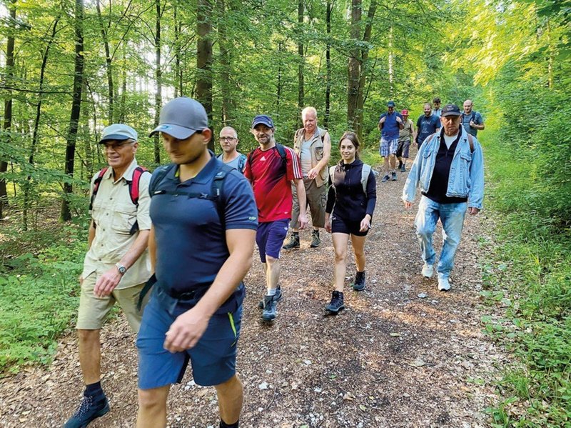 Große Herausforderung gut gemeistert. Bewohner und Bewohnerinnen der Laufer Mühle absolvierten eine Tageswanderung über 31 Kilometer trotz großer Hitze. Der ehrenamtlicher Helfer Hans Thiem (1.v.l.) hatte die Führung organisiert.