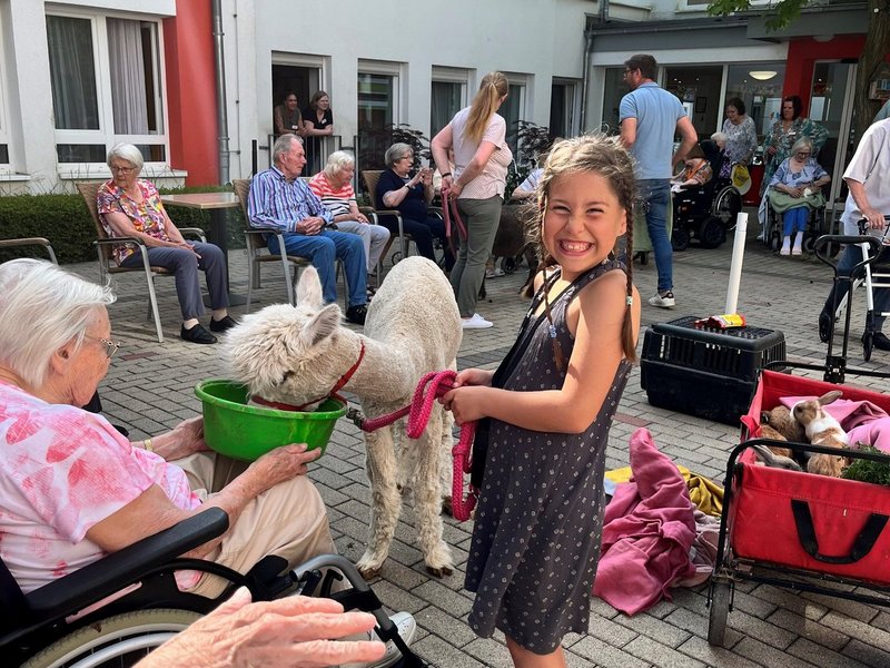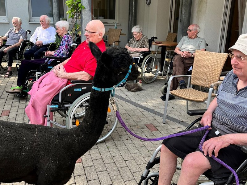 Heute war Gregor Kryk wieder mit seinen Therapie-Tieren zu Besuch in unserer Einrichtung. Die Töchter von der Direktorin Frau Tranzfeld haben tatkräftig unterstützt und alle Bewohnenden hatten viel Freude.