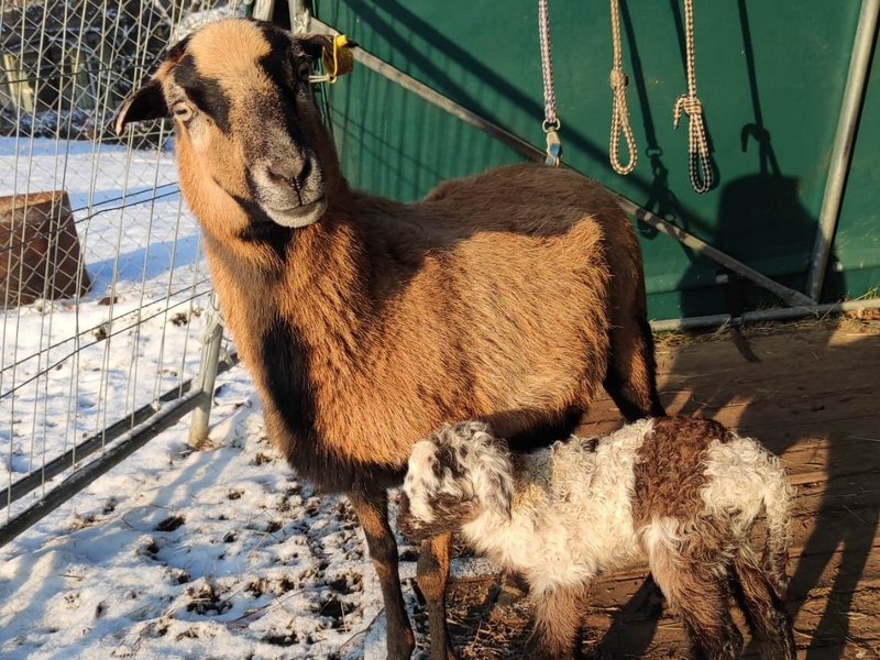 Das Lämmchen ist ein Mix aus einem Kamerun- und einem Schwarznasenschaf.