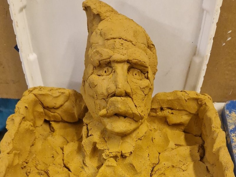 Ein Foto zeigt eine Plastik in der Entstehung. Sie ist noch nicht fertig. Der Prozess läuft.