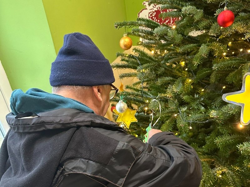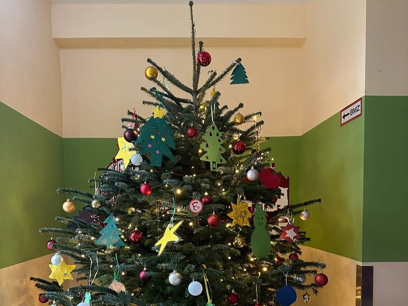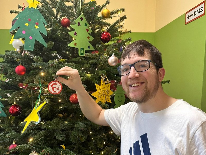 Für einen Fußballfan aus der Spatzengruppe fehlt noch das Fortunalogo an unserem Weihnachtsbaum, so dass er es organisiert hat. Jetzt schmückt es prominent den Baum.