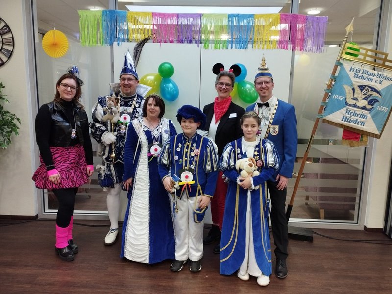 Am Karnevalssamstag schallte wieder der Ruf "Westfalen Helau und Möppel wau wau" durch unser Haus, denn die Karnevalsgesellschaft blau-weiß Neheim war zu Besuch! Mit Gardetänzen, Büttenreden, Showtanz und flotter Musik sorgten sie für jede Menge gute Stimmung und Begeisterung. Ganz feierlich überreichten die Prinzenpaare der ältesten Bewohnerin und dem ältesten Bewohner im Saal einen Sessionsorden. Allen Akteuren wurden von unserer Bastelgruppe selbst hergestellte "Mäuseorden" überreicht, die viel Anerkennung erhielten. Das schönste Versprechen kam von einem kleinen Mädchen am Ende der Veranstaltung, das aufgeregt und voller Freude verkündete: "Wenn wir nächstes Jahr wiederkommen, dann tanze ich auch mit!" - so endete der Tag bereits mit Vorfreude auf das nächste Wiedersehen. Wir danken allen Beteiligten, die all den Faschingsspaß in unser Haus gebracht haben!