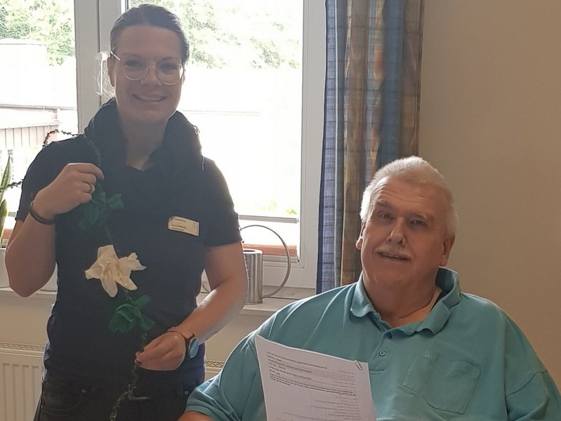Herr Paul Leusing und Frau Ahaus begleiteten diese Aktion, die immer sehr gerne von den Bewohner/-innen, die nicht mobilisiert werden können, angenommen wird.