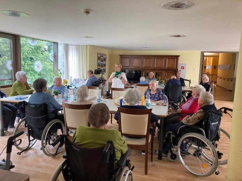 In unserer Urlaubswoche im Haus reisen wir gedanklich ins Fichtelgebirge. Wir packen in unseren Koffer alles was wir benötigen, um diese atraktive Ferien und Wanderregion zu erkunden: Dabei haben wir am ersten Tag der Urlaub im Haus Woche viel Wissenswertes über das Fichtelgebirge gelernt: welche berühmten Persönlichkeiten aus der Region kommen, welche Sehenswürdigkeiten und Freizeitaktivitäten es dort gibt. Ganz wichtig ist es dem Team der Betreuung dabei, den persönlichen Blick auf die Bewohner zu richten. Liebevoll und individuell geht die Betreuung auf die persönlichen Erinnerungen der Bewohner ein. Heute morgen wird viel Wissenswertes vermittelt heute Nachmittag setzt die Betreuung auf eigenes Wissen, beim Bingo spielen rund um das Thema Fichtelgebirge.Bei Bowle und Knabbergebäck können die Bewohner in lockerer Runde ihr Wissen abrufen und kund tun.Zu gewinnen gibt es sogar auch eine Kleinigkeit. Ein aufregender erster Tag in unserer Themenwoche.
