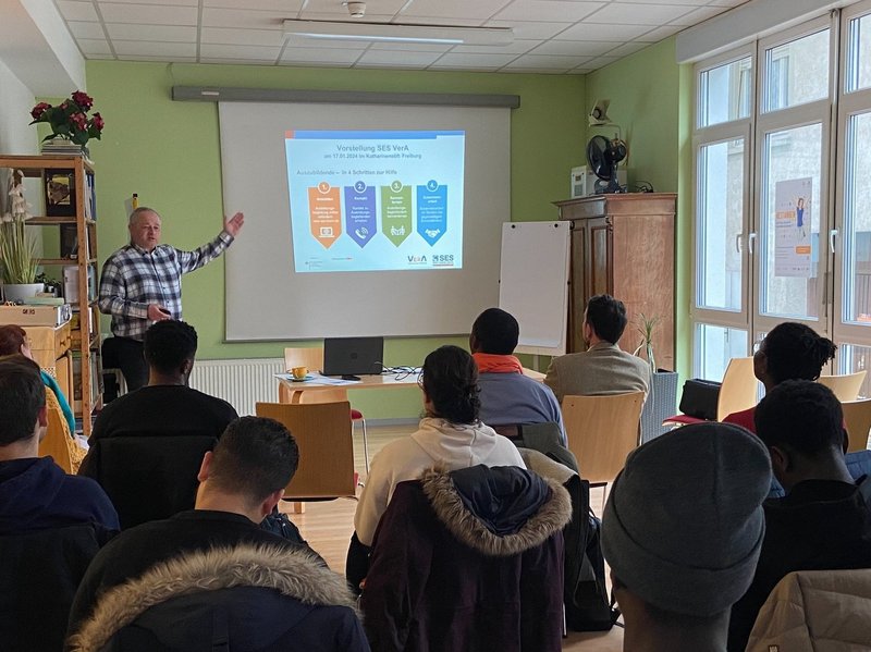Genau hier setzt die Initiative von VerA an, indem sie persönliche Mentoren für die Auszubildenden sucht, die ehrenamtlich bei Fragestellungen, Organisation und Unterstützungsbedarfen rund um den Bildungsweg, aber auch des alltäglichen Lebens begleiten und stärken.