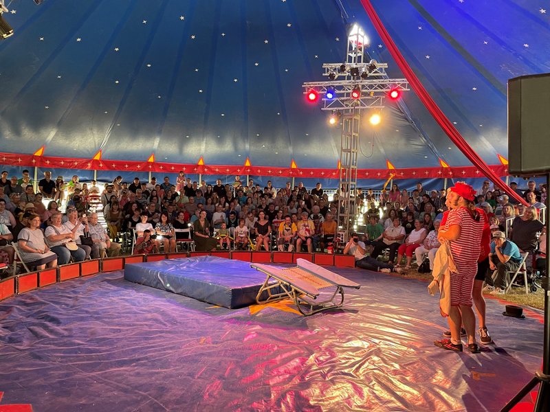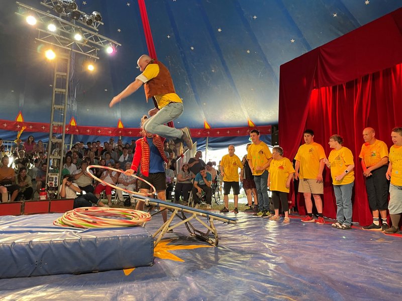 Als der Einlass startete, waren wir alle freudig überrascht: Die Vorstellung war ausverkauft. Das steigerte die Anspannung der Artistinnen und Artisten nochmal um so mehr. Die Vorstellung startete mit einer Trampolinnummer, gefolgt vom Seiltanzen, Jonglage und dem Trapez. Es war unglaublich, was die Artistinnen und Artisten in dieser Woche alles gelernt haben. Sie wuchsen über sich selbst hinaus und legten eine unglaublich tolle Aufführung hin.