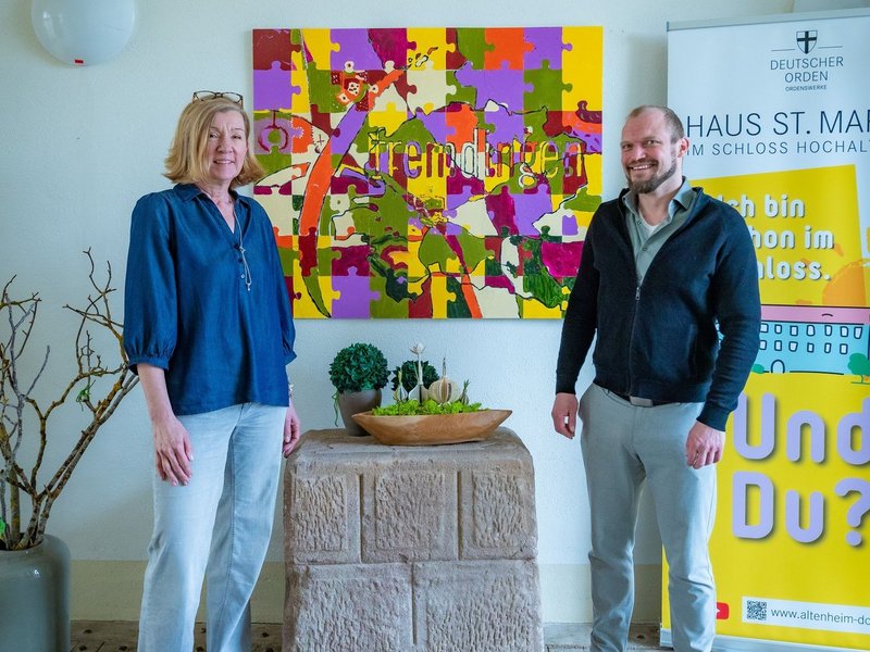 Des Weiteren haben wir alle gemeinsam ein spannendes Kunstwerk geschaffen. Alle Gäste der Veranstaltung hatten die Möglichkeit, große Puzzleteile individuell zu bemalen. Nur die schon vorhandenen schwarzen Linien sollten sichtbar bleiben. Zusammengesetzt ergibt das Puzzlebild eine Aufsicht auf unser Quartier Fremdingen sowie den Fremdingen-Schriftzug. Die schwarzen Linien sind die Straßen und Flüsse, Schienen, Häuser… Das farbenfrohe Werk hängt inzwischen im Eingangsbereich von Schloss Hochaltingen und freut sich über zahlreiche Besucherinnen und Besucher!