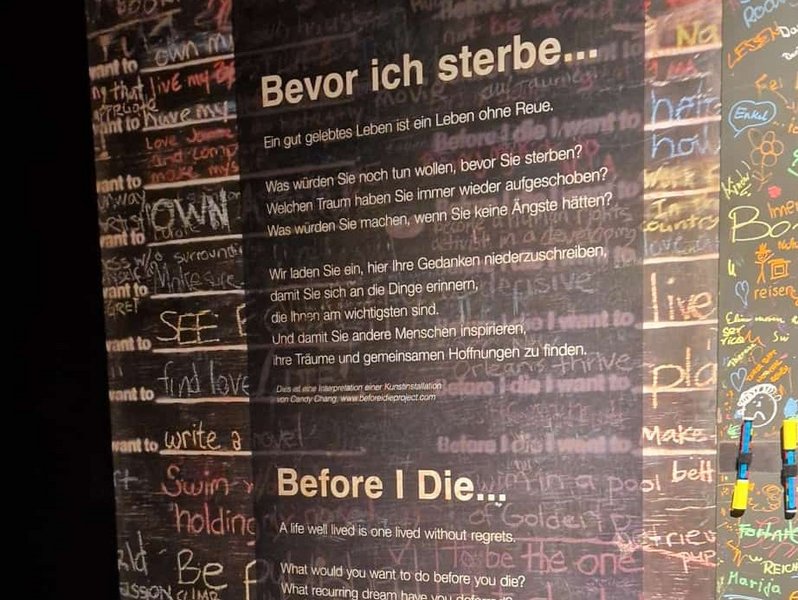 Im Rahmen des Besuchs ist auch geplant, die begleitende Aktion "Before I die, I want to..." in unserer Einrichtung aufleben zu lassen. Dieses Projekt lädt dazu ein, über eigene Wünsche, Träume und Prioritäten im Leben nachzudenken. Was möchte man noch erleben? Was ist wirklich wichtig? Was zählt für einen selbst ganz persönlich? Welche Ziele und Visionen trägt man in sich – auch im fortgeschrittenen Alter?