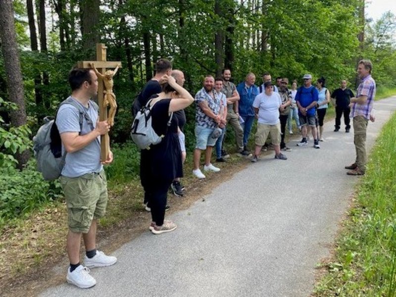 Eine langjährige Tradition in der Laufer Mühle: Die Wallfahrt im Marienmonat Mai für jeden Interessierten, der in der Laufer Mühle wohnt oder arbeitet. Zu Fuß wandern wir von der Einrichtung 7 km zum Kreuzberg nach Hallersdorf, mit Zwischenstop in der kleinen Kapelle in Haid und der Kirche in Willersdorf. Wir waren wieder mit trockenem mildem Wetter versorgt und so konnten wir uns gedanklich mit Maria, der Mutter Jesu auf den Weg machen.