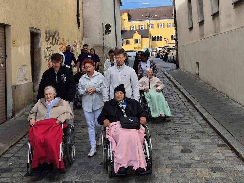 Begleitet von zahlreichen Kolleginnen und Kollegen startete unsere Gruppe bei strahlendem Sonnenschein. Unterwegs bot sich nicht nur Raum für persönliche Gespräche, sondern auch für das bewusste Erleben der besonderen Stimmung, die die Prozession mit sich brachte. Durch die belebten Gassen Regensburgs führte uns der Weg hin zu einem Ort der Ruhe und Besinnung.