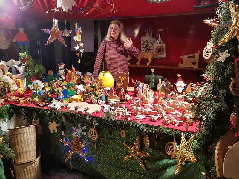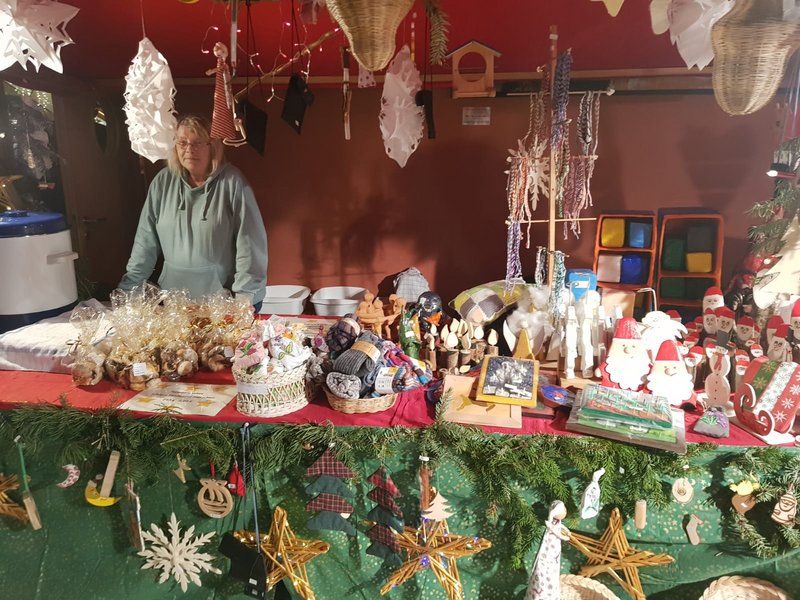 Der Christkindlmarkt war gut besucht, so dass der liebevoll dekorierte und gut bestückte Verkaufsstand ein attraktives Ziel für die Besucher/-innen war.
