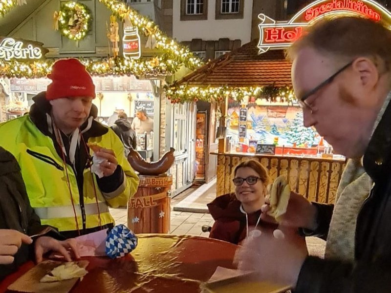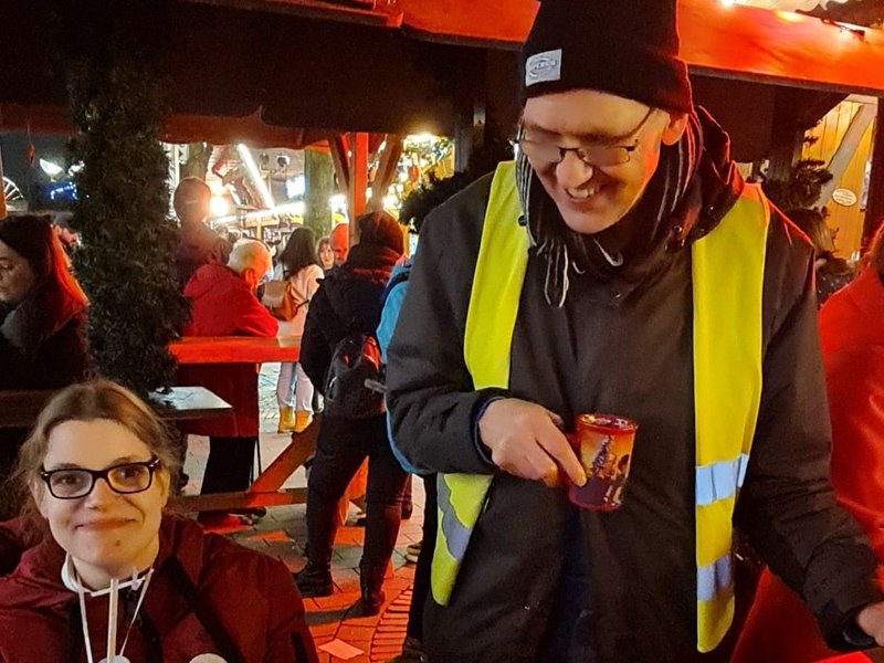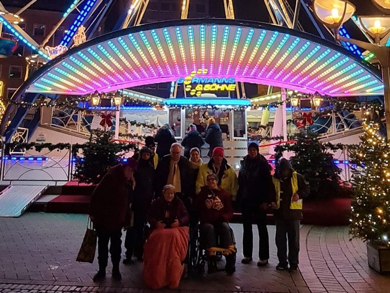 Weihnachtsmarktbesuch der Wohngemeinschaft mit Glühwein, Crepes und anderen Leckereien, die unsere Bewohnerinnen und Bewohner lieben.