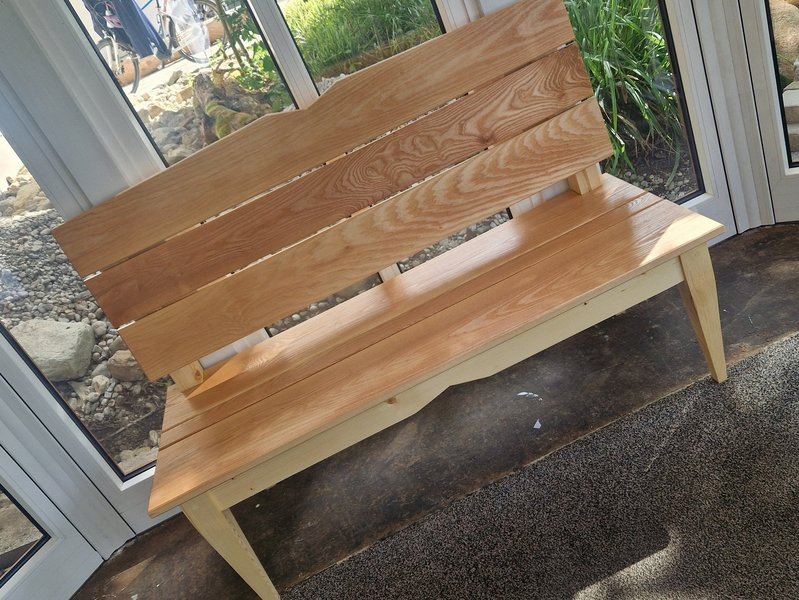 Es ist eine außerordentliche Holzbank entstanden ... toll, oder?