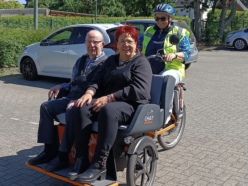 Die geschulten ehrenamtlichen Piloten halfen beim Ein- und Aussteigen und nutzten die kurzen Probefahrten, um weitere praktische Erfahrungen zu sammeln. Die Resonanz war sehr positiv – einige wollten gar nicht mehr aussteigen. Das Projekt befindet sich im Aufbau; es werden noch Rikschas, eine Trägerorganisation und weitere ehrenamtliche Fahrer gesucht. Ein Rikscha-Standort am St. Josefshaus ist fest eingeplant.