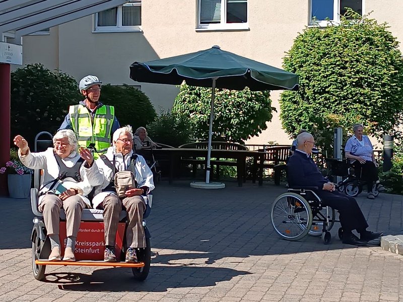 Eine Bewohnerin sagte: „Ich bin 93 Jahre und setz mich doch nicht mehr auf so ein Fahrrad und lass mich fahren.“ Als sie hörte, dass ihre Tochter auch mitfahren könne, sagte sie sofort: „Ja dann sieht die Welt ja schon ganz anders aus.“