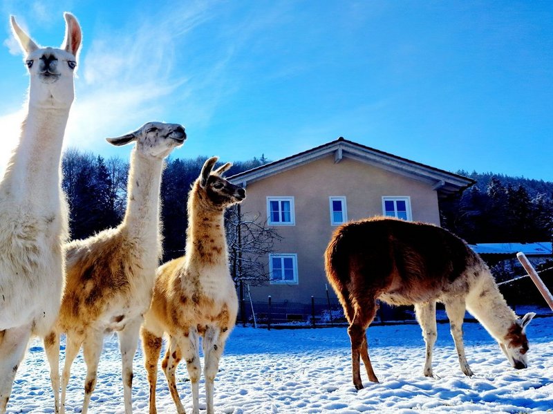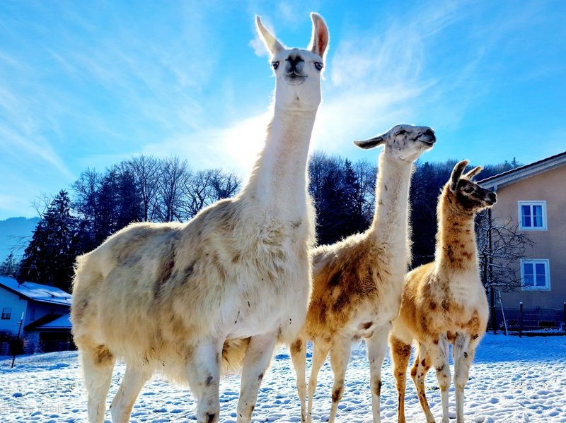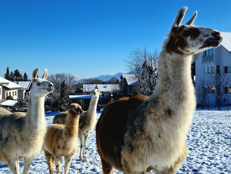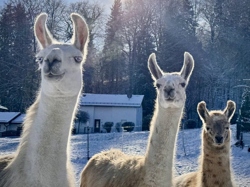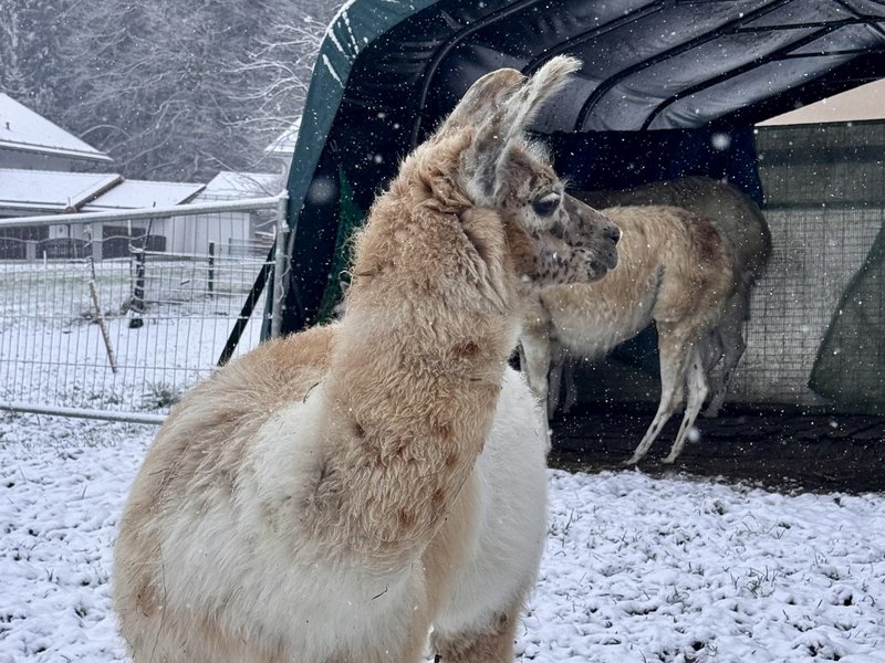 Wir haben uns riesig gefreut, als uns unsere Bewohnerin Romina S. und unser Bewohner Alex Q. diese wunderbaren tierischen Wintermomente geschickt haben. Beide haben einfach ein Händchen dafür, besondere Augenblicke einzufangen – und diesmal standen unsere Lamas und Alpakas im Mittelpunkt.