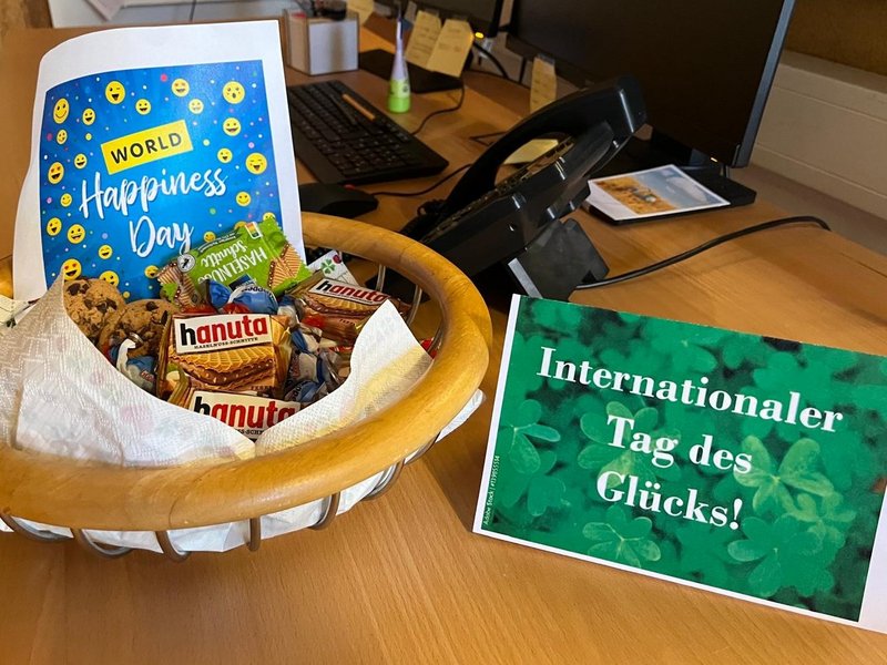 Unsere Verwaltungsleitung, Monika Schöffel, hat immer ein Auge auf das Wohl Ihrer Kolleg/-innen und Mitarbeitenden. Für sie war klar: Am "World Happiness Day" darf die Extraportion Schokolade für das Betreuungsteam nicht fehlen! Denn sogar Studien beweisen, dass Schokolade glücklich macht. Es sind kleine Gesten, die uns aber allen sehr gut tun. Danke liebe Monika, für dieses spontane süße Highlight!