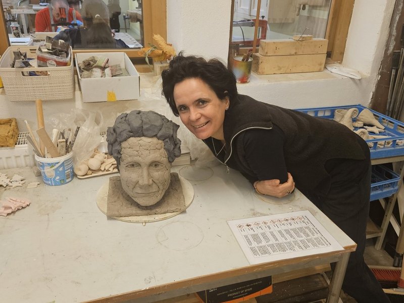Heute hat unser Bewohner Herr M. stolz sein neuestes Kunstwerk präsentiert: eine modellierte Büste unserer Einrichtungsleiterin Bettina Neumayr. Das Ergebnis kann sich wirklich sehen lassen! Mit viel Geduld, einem guten Blick fürs Detail und einer großen Portion Humor hat Herr M. sogar versucht, die Stirnfalten von Frau Neumayr nachzubilden. Ein mutiger Schritt – und ein Beweis dafür, wie aufmerksam Künstler ihre Modelle beobachten.